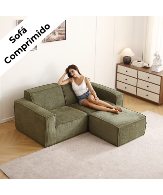Para um sofá de 2 lugares com 1 puff, recebe 3 caixas, cada módulo embalado individualmente.