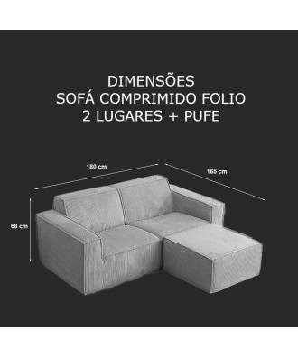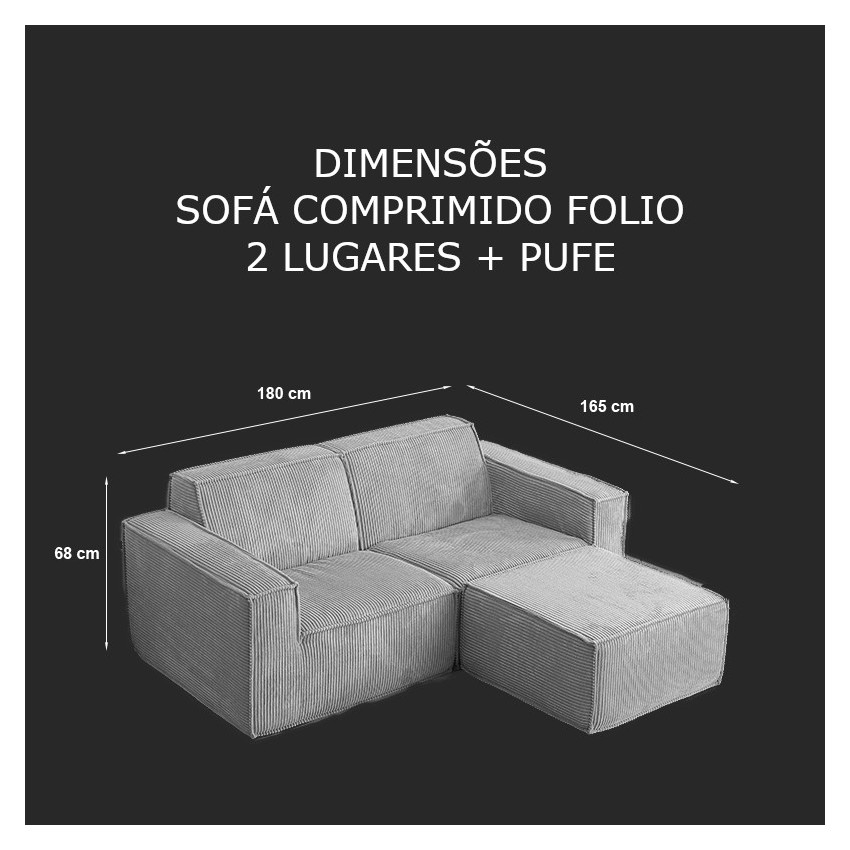 Quanto ao puff, pesa apenas 8 kg, com embalagem de 23 x 23 x 78 cm, permitindo movê-lo à vontade para formar uma meridiana com o canto ou utilizá-lo como mesa de apoio.
